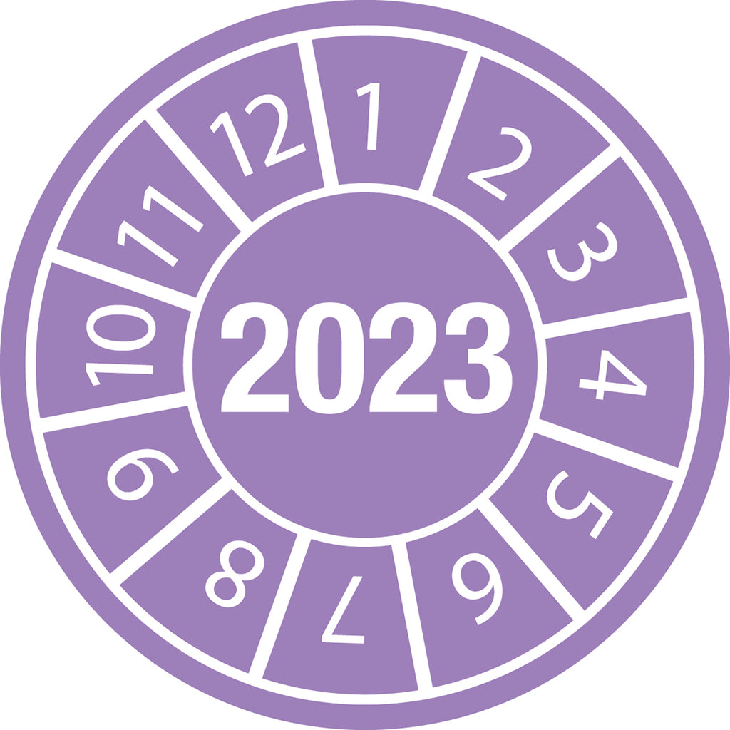 Tamper-evident Inspection Date Labels Year 2023. Inspection date labels can be used wherever a frequent and regular inspection of machinery and equipment is required. On example is the indication of the inspection date of fire extinguishers. Simply mark the label with a hole punch (275065, 225053 or 225054) and apply wherever you need it. Use the yearly colour system to easily identify when your equipment was last inspected. Tamper-evident labels show evidence of unauthorised removal.